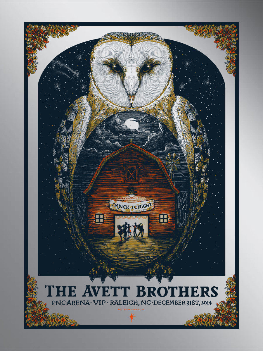 Gigposter for the Avett Brothers show at the PNC Arena in Raleigh NC on 12-31-14.