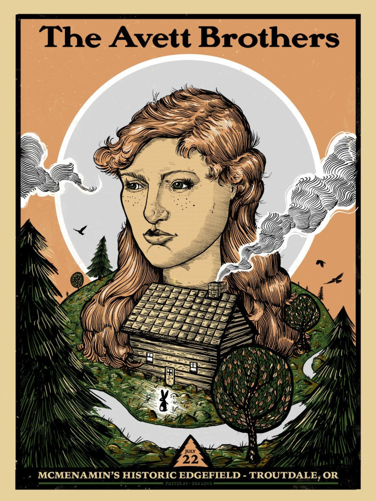 Created for The Avett Brother's recent July 21 & July 22 show in Troutdale OR.