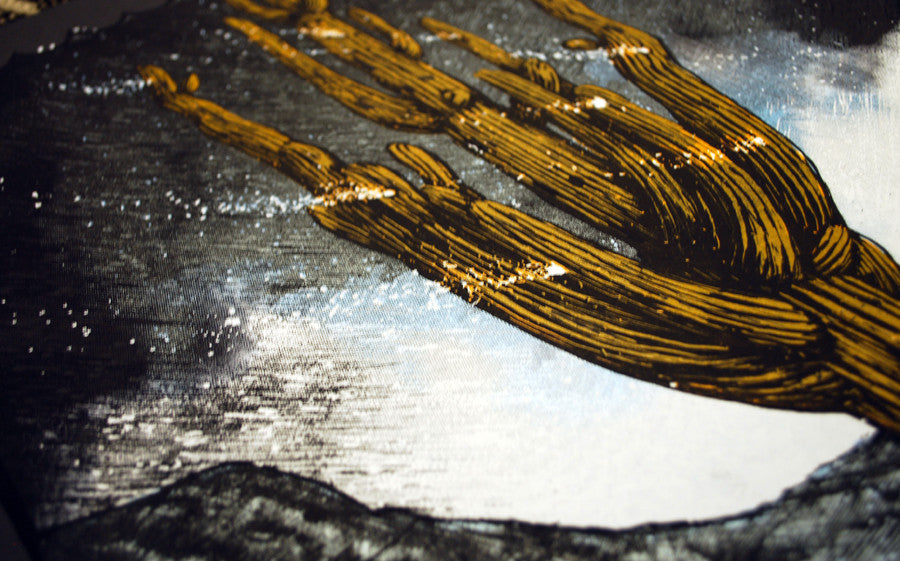 18x24" - 5 Color Silkscreen, with Metallic Blue and Gold - 100lb Black Liquorice Paper - Edition of 19