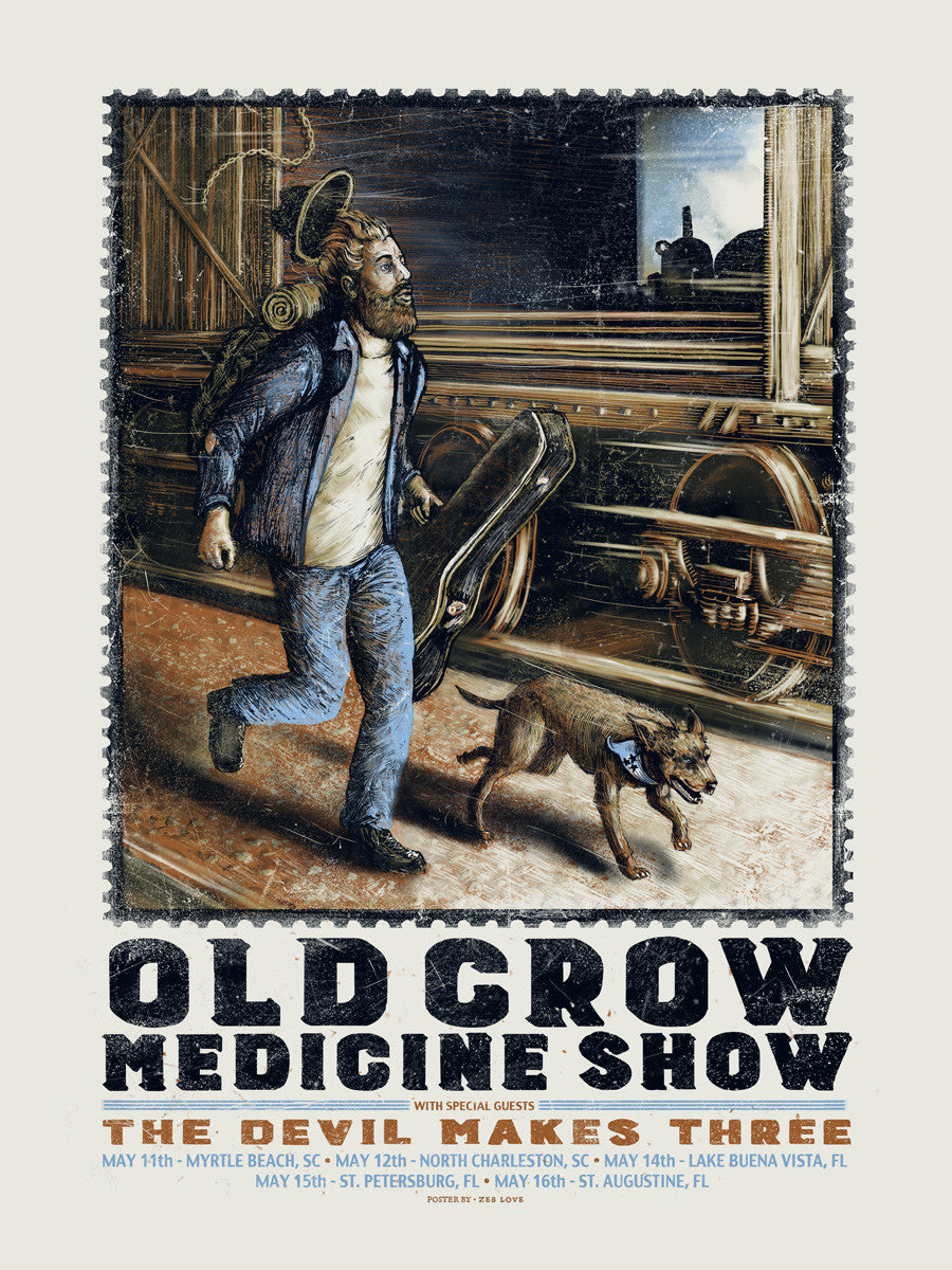 Gigposter for Old Crow Medicine Show + The Devil Makes Three May 2015 tour.