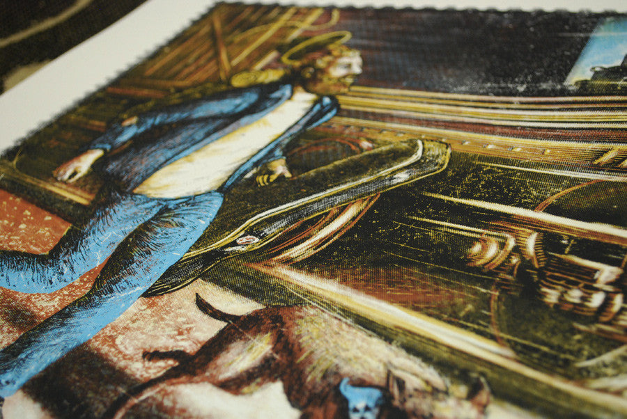 18x24" - 4 Color Silkscreen w/Metallic Gold - 100lb Speckletone White - Ap edition of 13