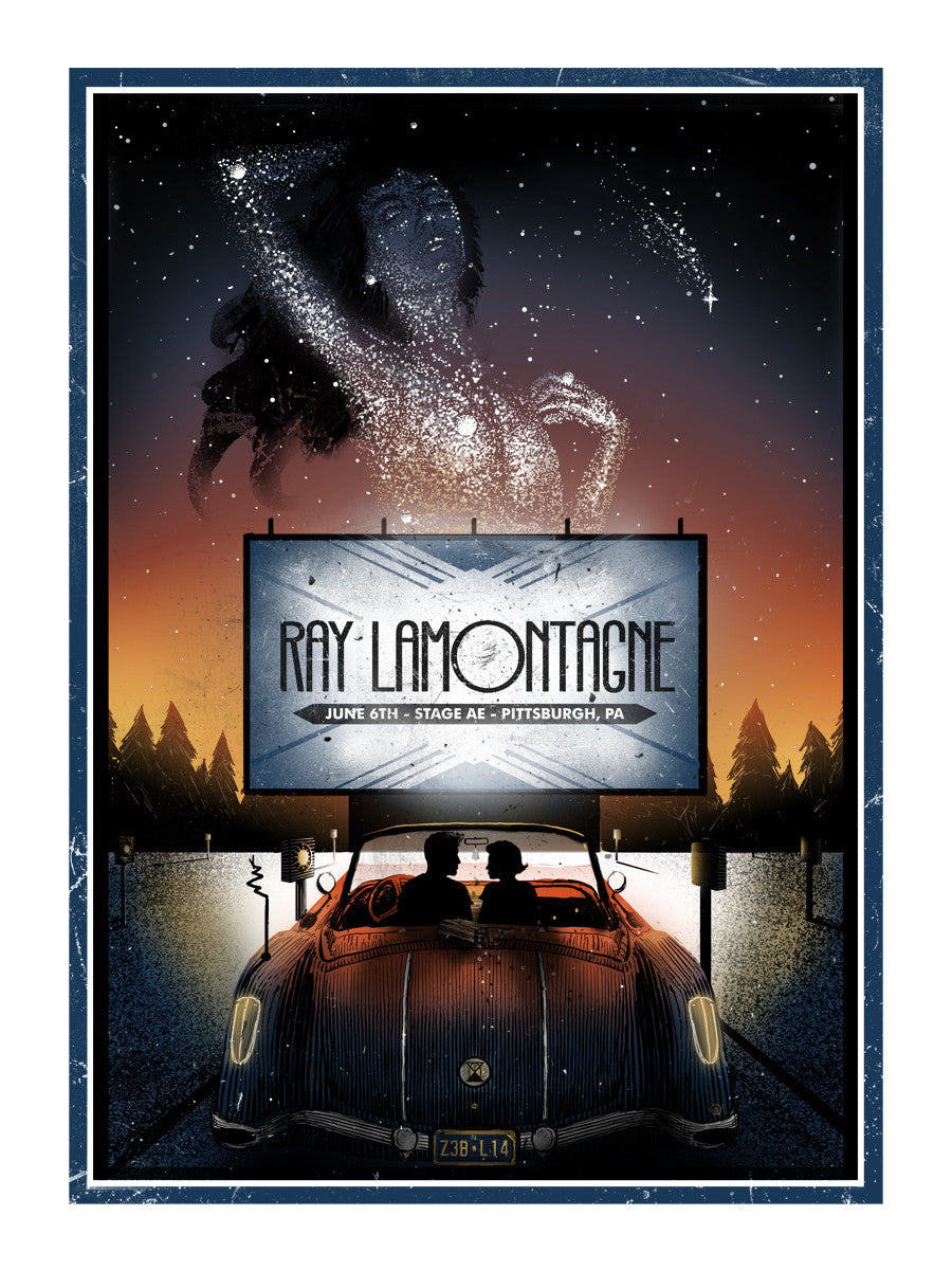 Gigposter for Ray LaMontagne's show at Stage AE in Pittsburgh.