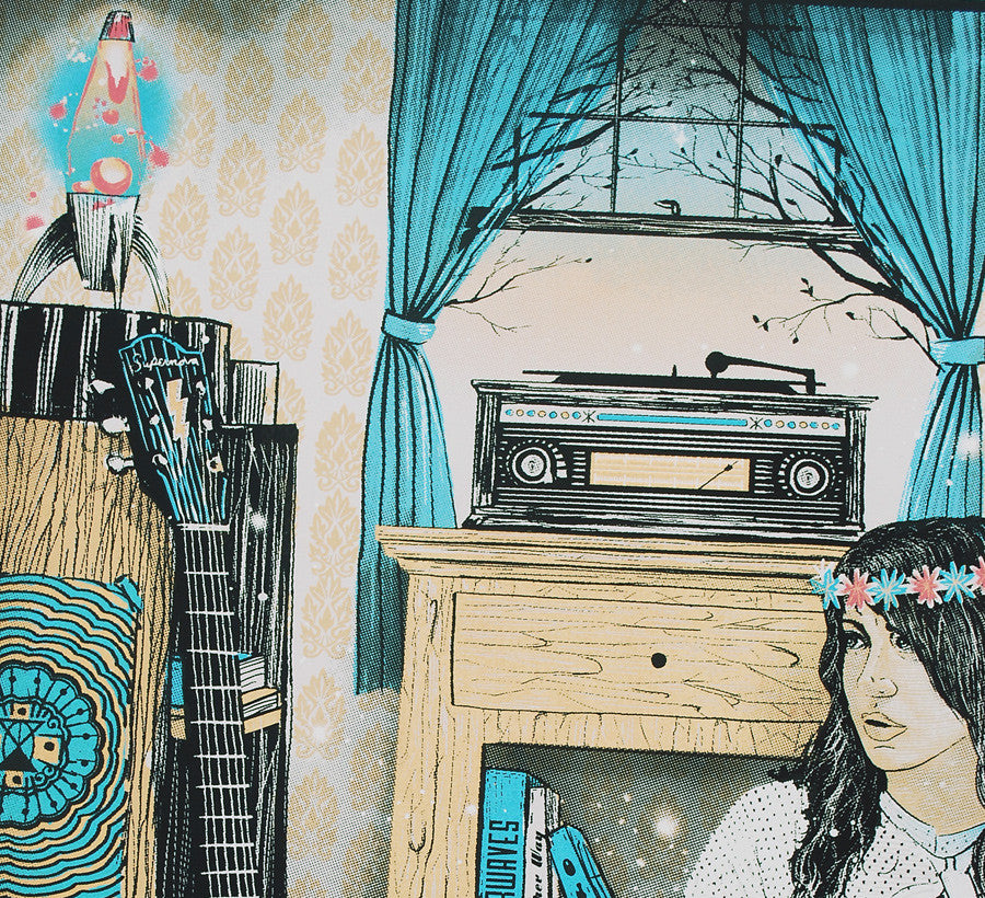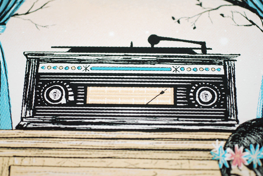 18x24" - 6 Color Silkscreen w/metallic blue & gold - Edition of 8 - Printed by hand on Grout Grey French Paper